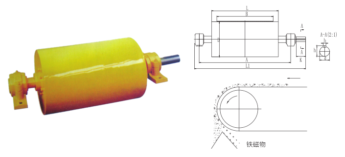 RCT型全磁滚筒与RCTG系列等同,亦称磁滑轮或干式大块磁选机。其内部采用高性能强磁材料组成强力磁系,具有磁场强度高、深度大、结构简单、使用方便、不需要维修、不消耗电力,常年使用退磁率小等特点。可用于水泥、磁选、矿山、钢铁、化工、耐火材料、垃圾处理等行业的选铁与TD-75型、AD-80型通用固定式皮带输送机配套使用代替主动轮,也可与专用皮带输送机配套。