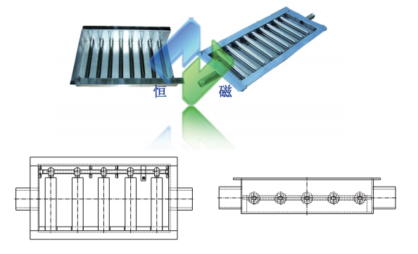 槽体可根据客户现场要求定做。各磁棒高度可根据流体厚度成梯度排列调节,有效保证槽内各部位均被磁场覆盖。分敞开式和密封式两种。磁棒直径和数量可根据现场要求定做。磁棒表面最高磁感应强度达12000GS.