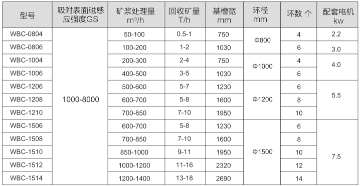 WBC型半磁尾矿回收机适用于选别磁性矿物,它可将尾矿浆中的磁性矿物进行富集回收,或从其它悬浮液中除去磁性杂质。