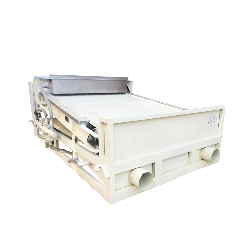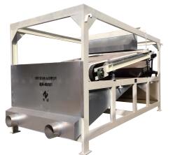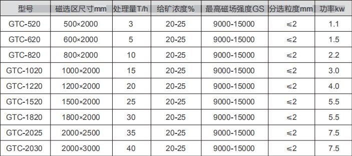 GTC型湿法板式磁分离机机主要由支架、板式磁选系统、入料搅拌系统、水源系统、卸铁系统、调节系统等结构组成。工作时,物料流向和卸铁系统成反向逆流式,非磁性物质利用物理学结构原理自流至出料口,经卸矿冲洗达到完全卸干净的目的。磁性物质经长距离、长区域、多次数被超强磁场吸附,经卸铁系统逆向运转至出铁口,经卸矿冲洗达到完全卸干净的目。