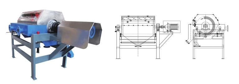 CTN型湿法全逆流式磁分离机其核心技术采用计算机模拟设计磁路,使磁选区的磁场分布更均匀,无空磁区,磁系大包角设计,滚筒表面磁场强度可达6000gs。槽体和滚筒表面做特殊耐磨处理,耐磨有多种方式可选,使整机寿命大大延长。二、示意图